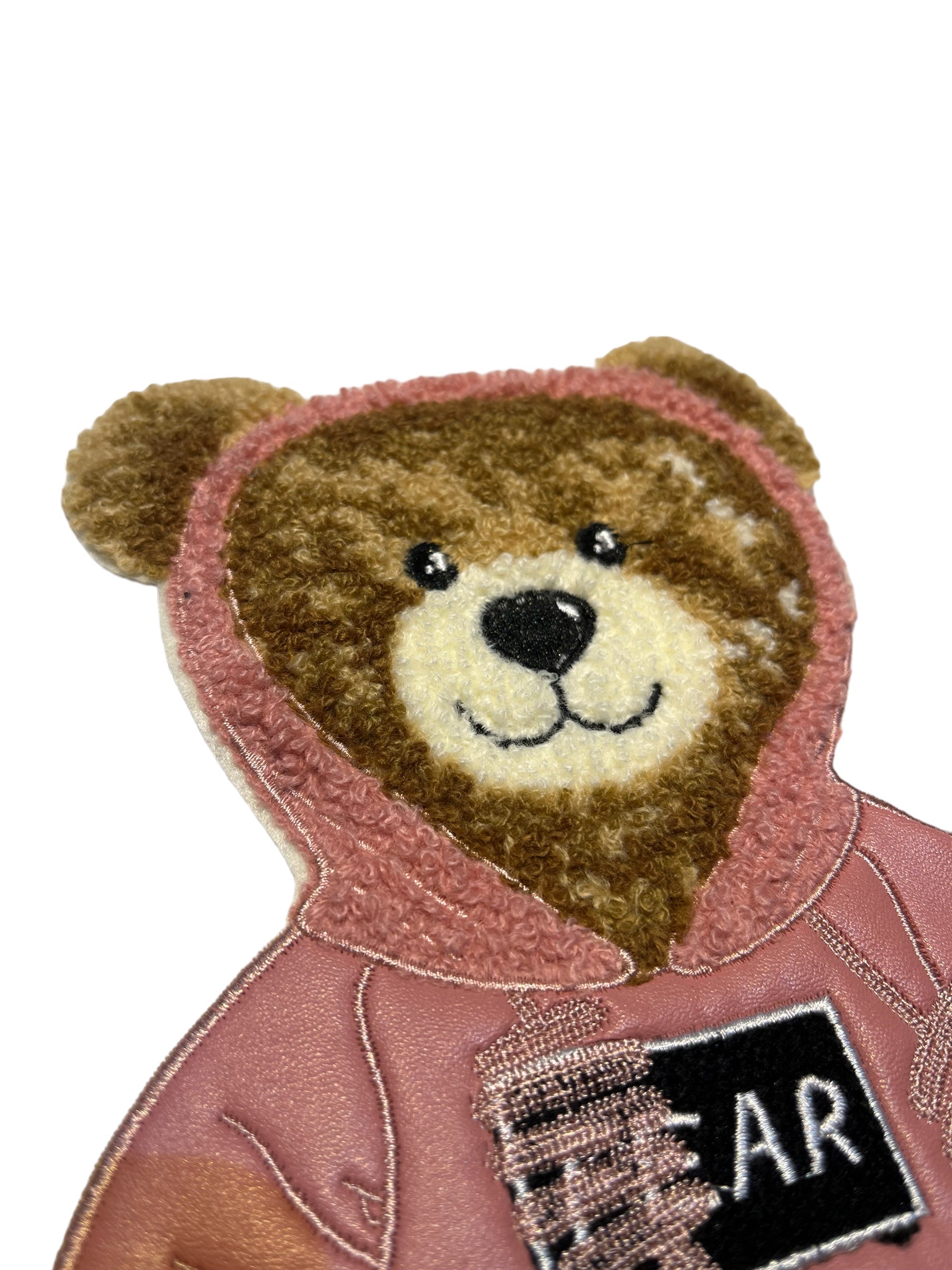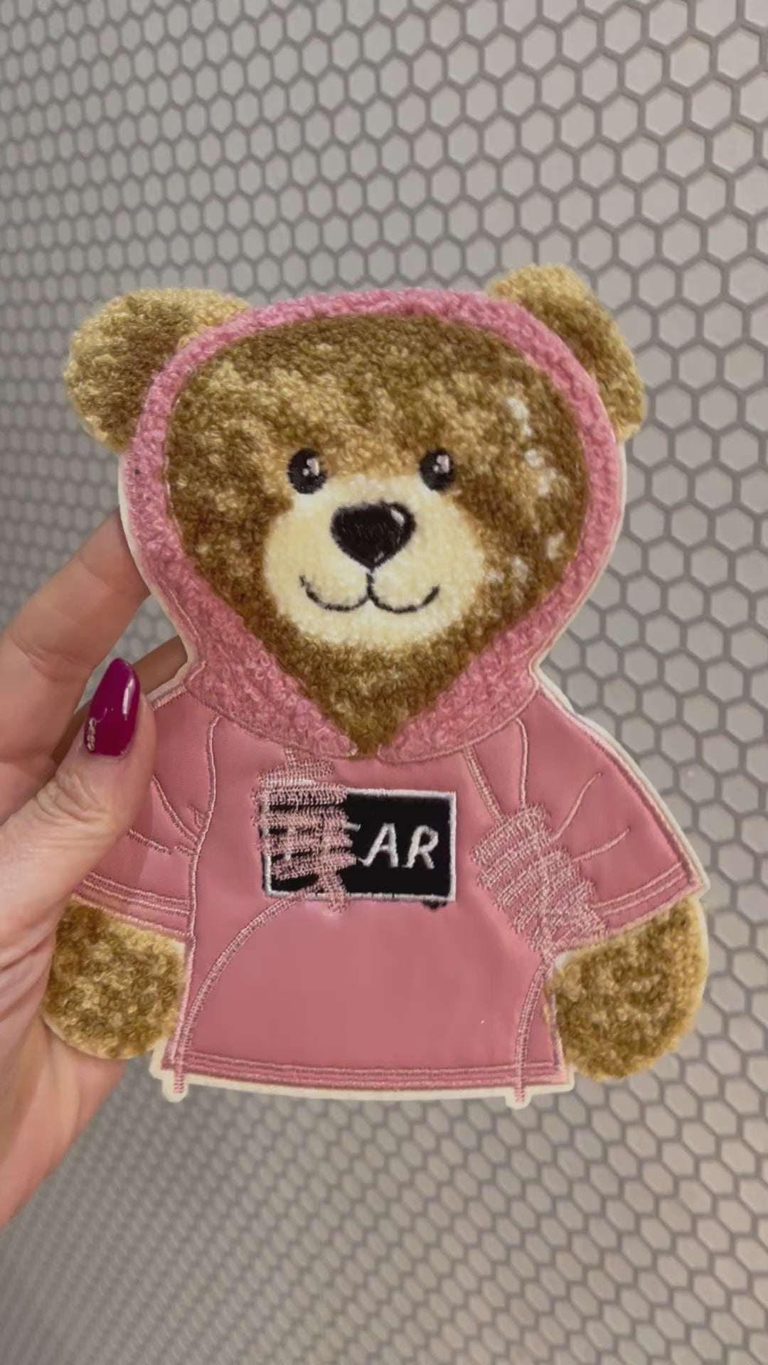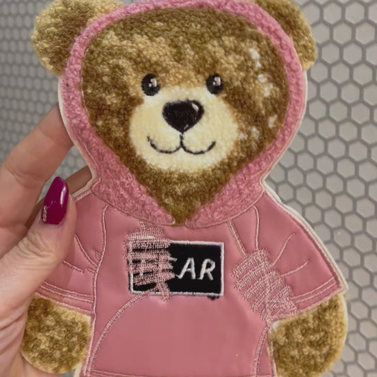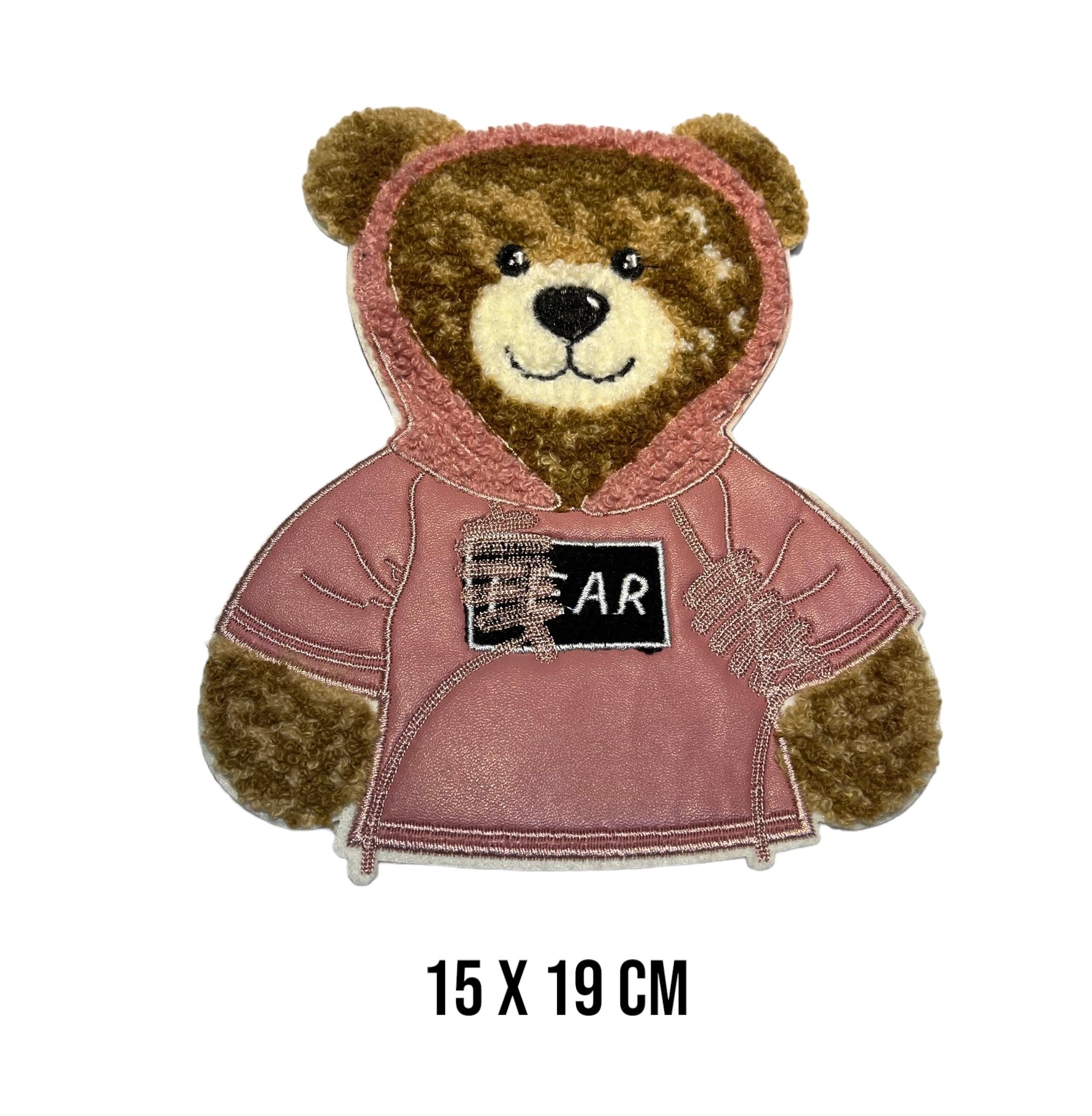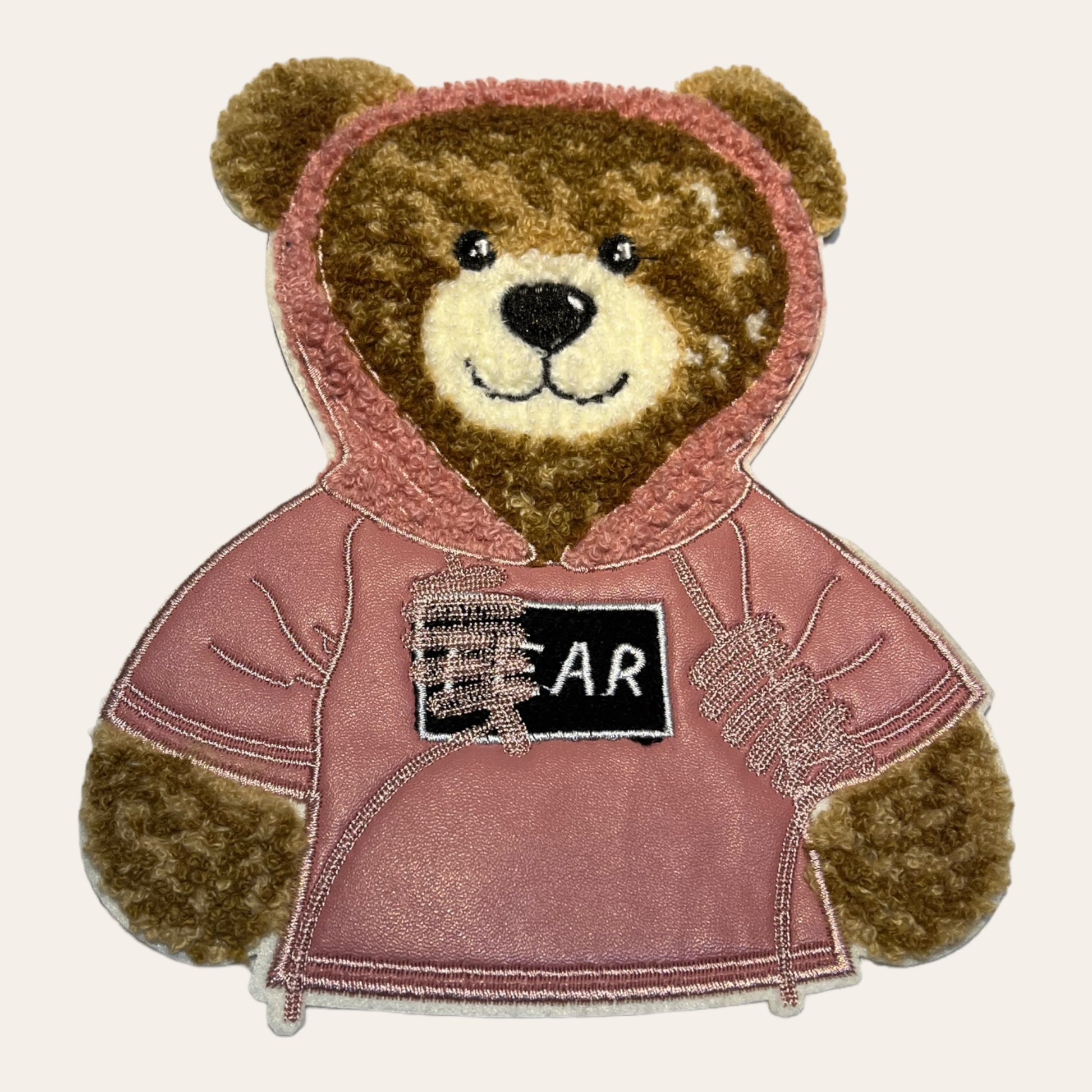 El parche de chenilla de osita es una encantadora creación confeccionada en un suave y esponjoso material de chenilla que recrea la figura de un osito.