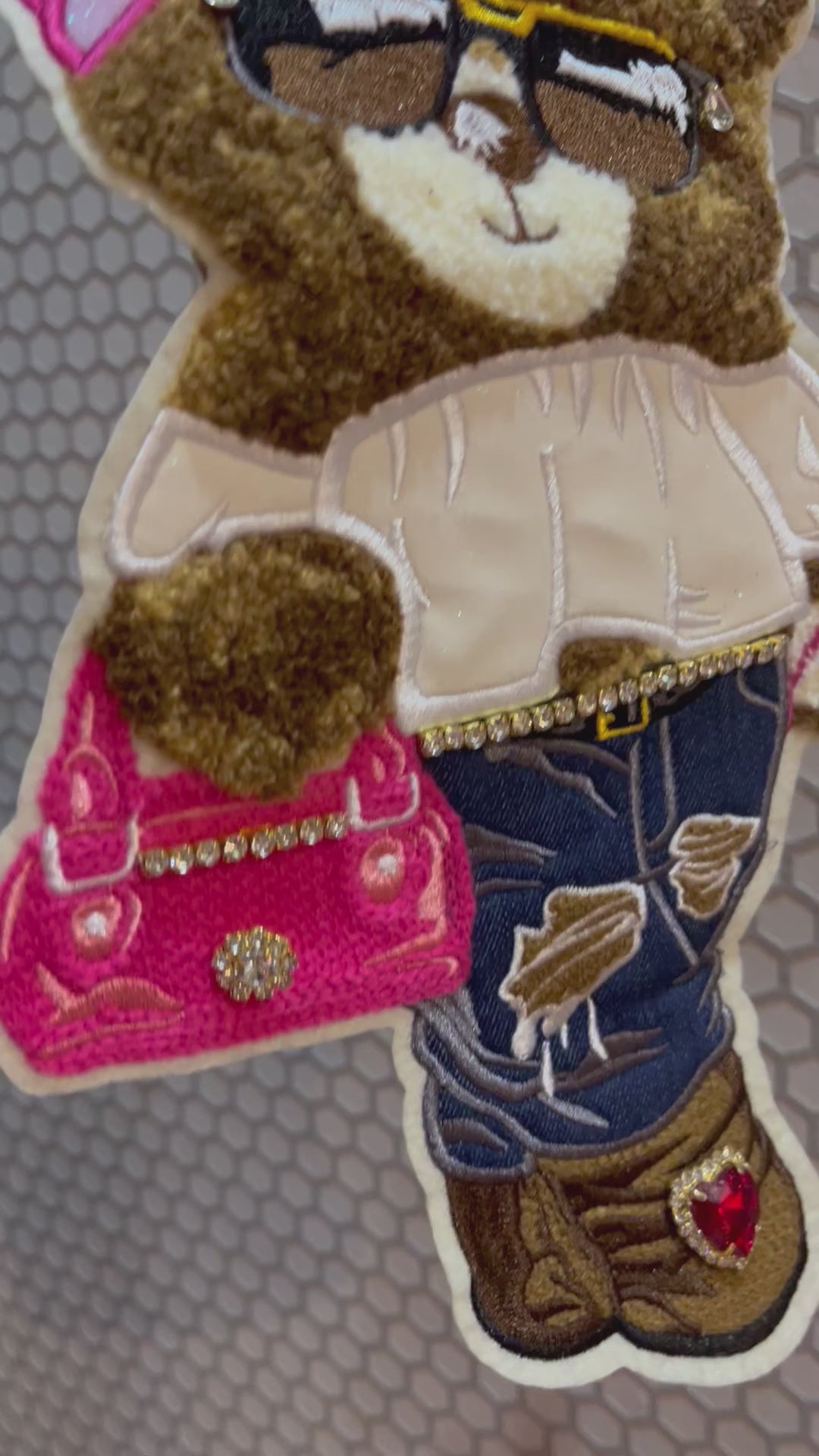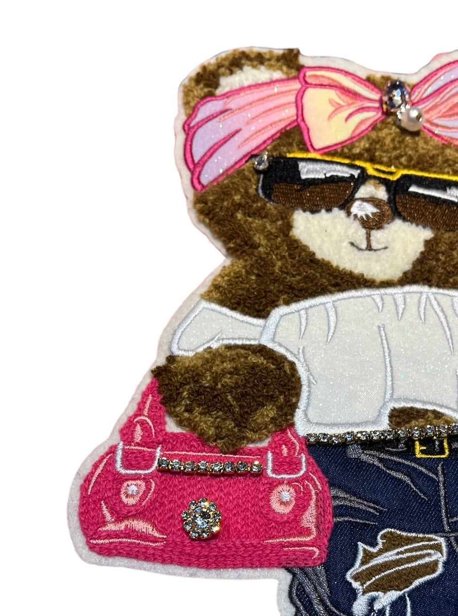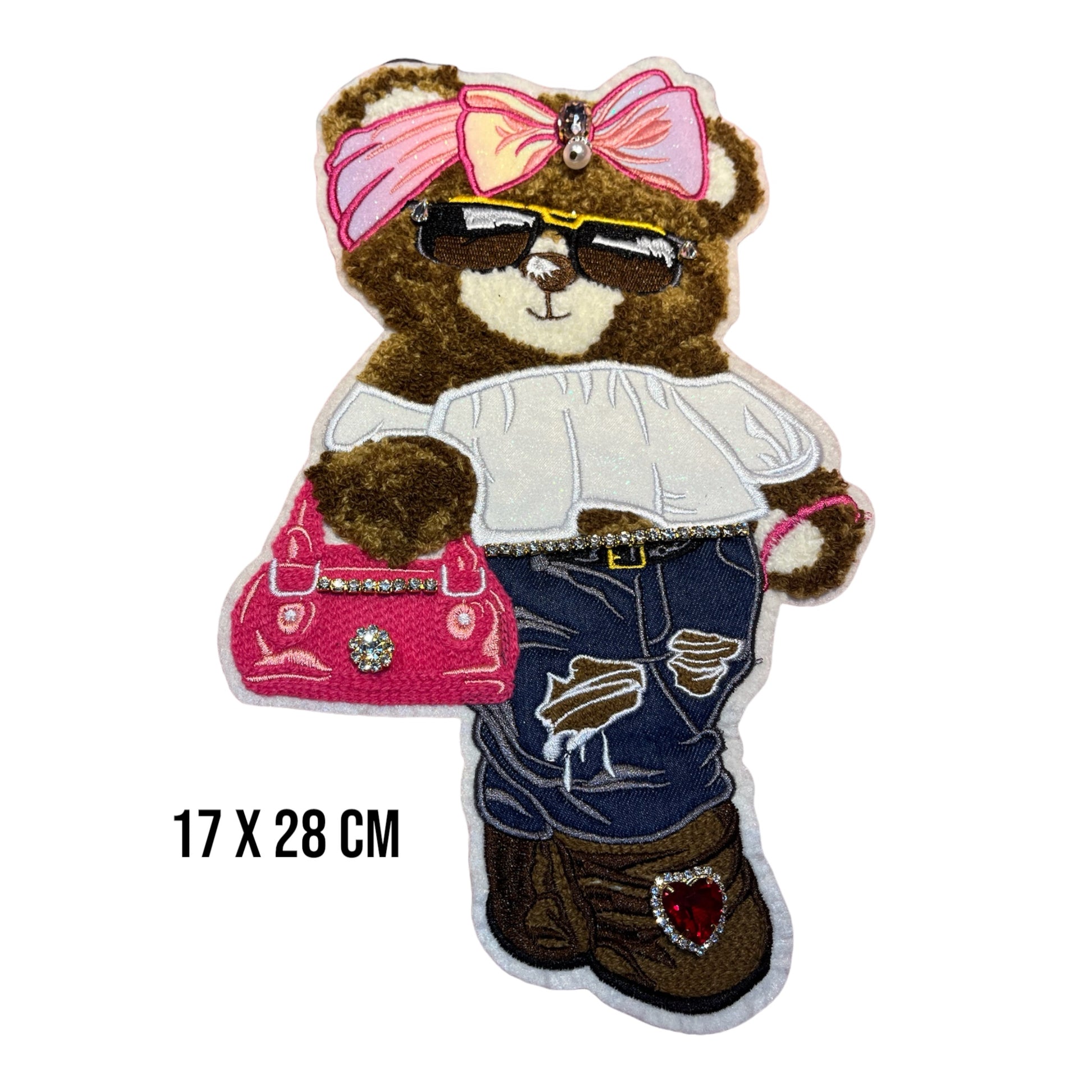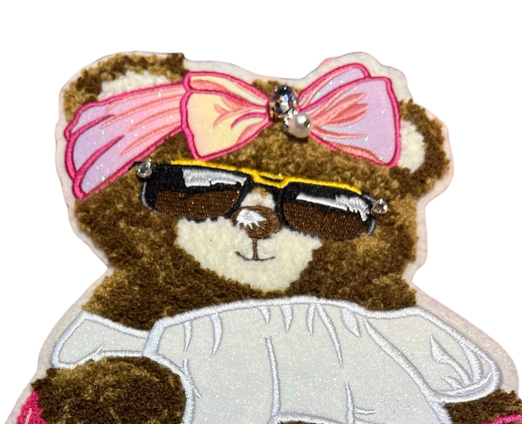 El parche de chenilla de osita es una encantadora creación confeccionada en un suave y esponjoso material de chenilla que recrea la figura de un osito.