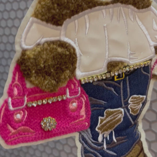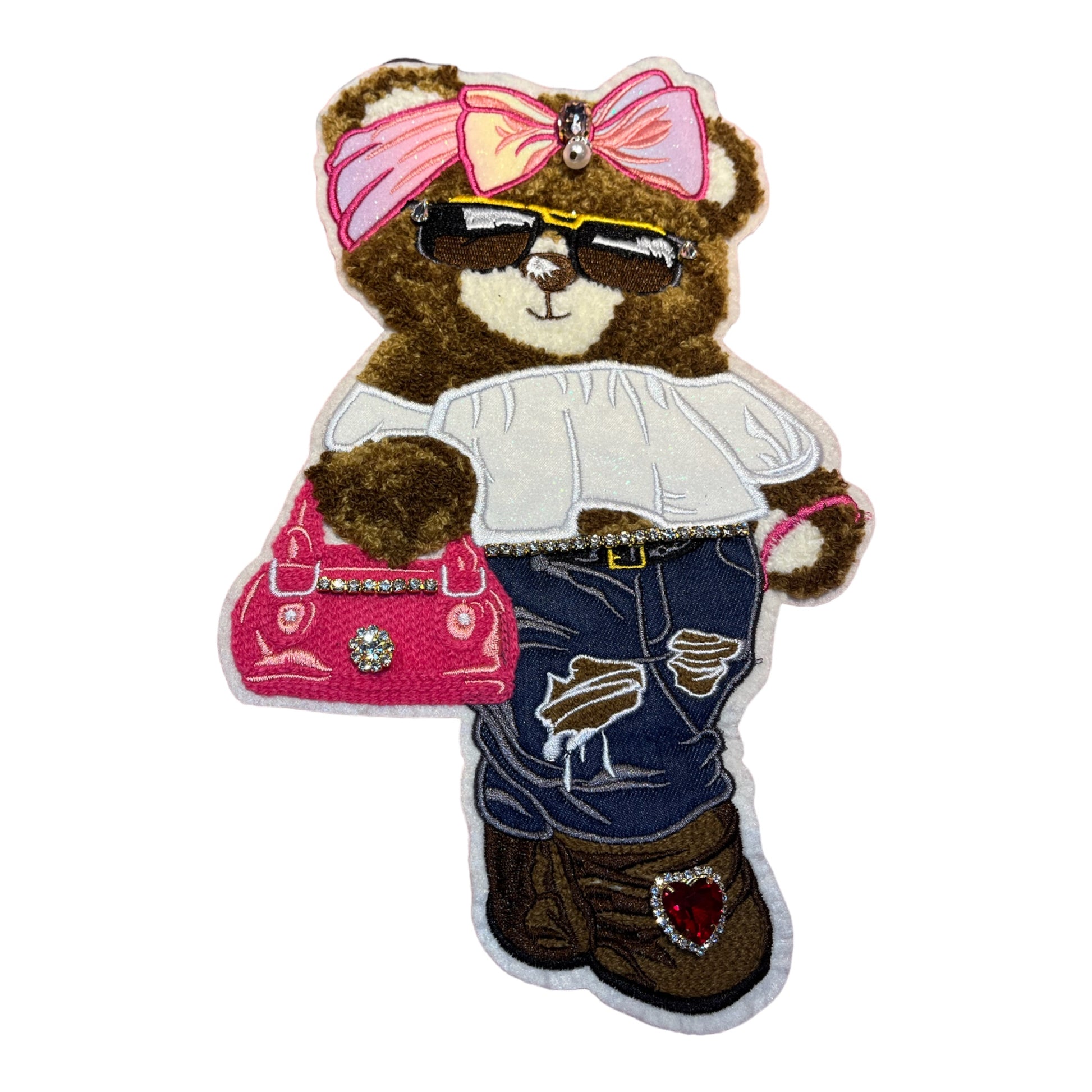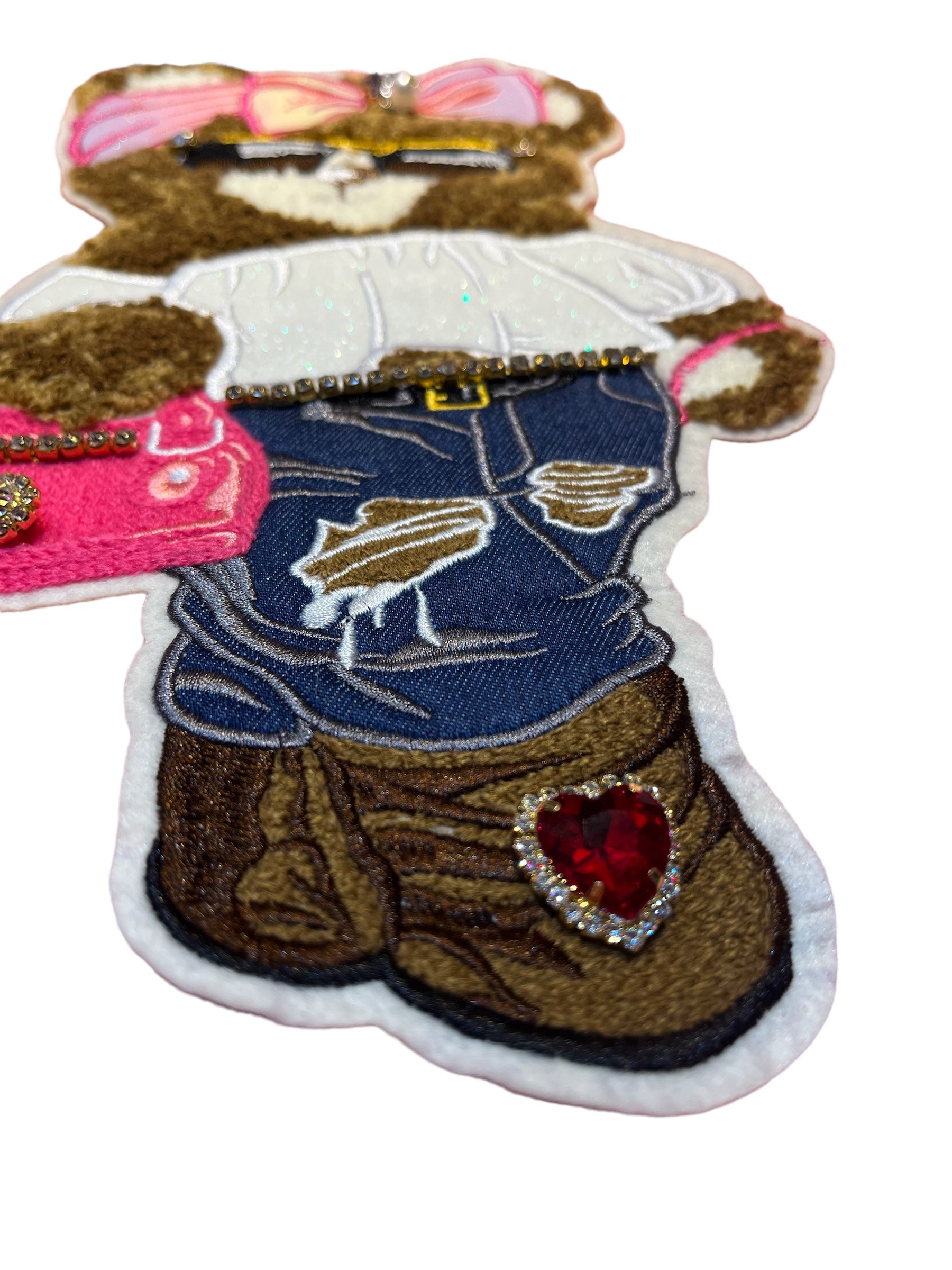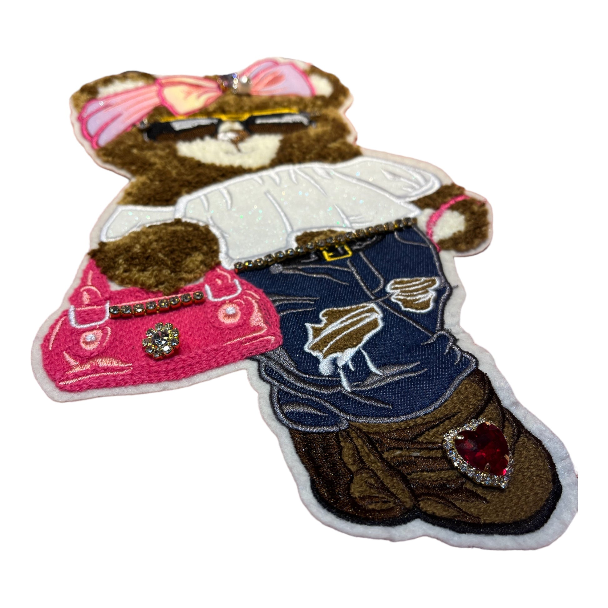 El parche de chenilla de osita es una encantadora creación confeccionada en un suave y esponjoso material de chenilla que recrea la figura de un osito.