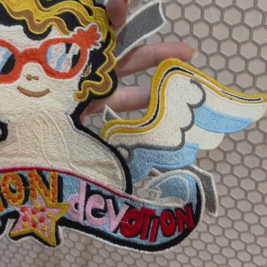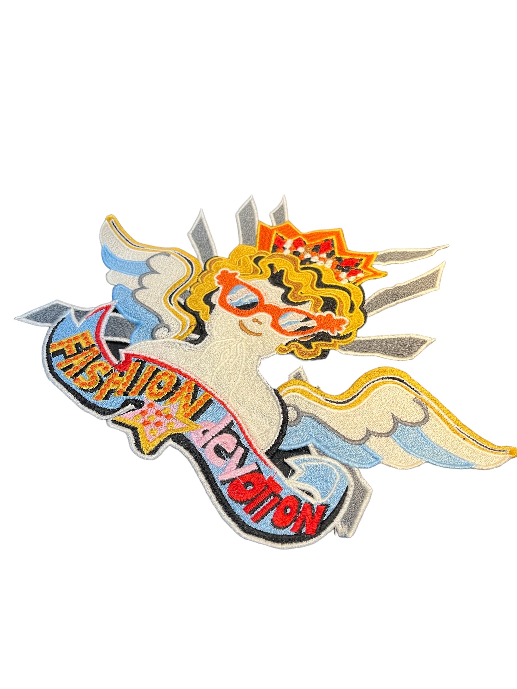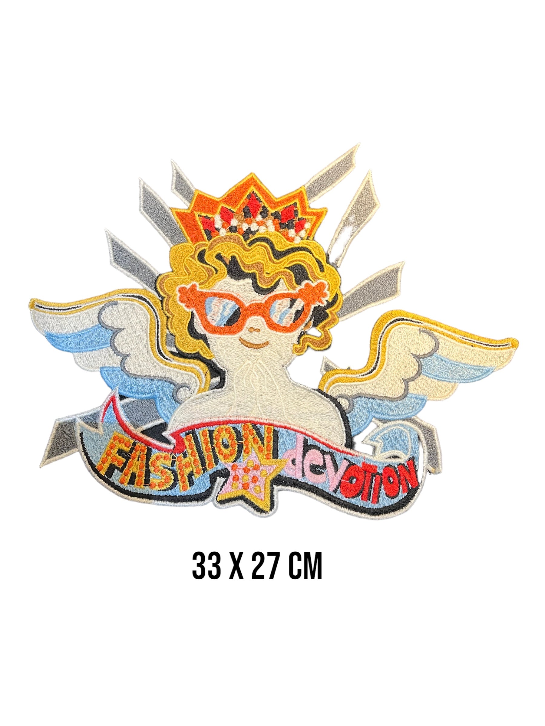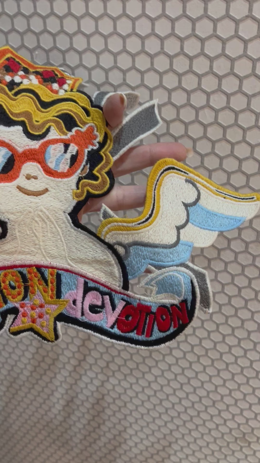 Detalles intrincados y bordados precisos dan vida a la imagen, con un toque de rebeldía al conjunto. Este parche no solo es una declaración de estilo, sino también una representación artística de la dualidad entre lo celestial y lo audaz, perfecto para personalizar prendas de aquellos que buscan fusionar el mundo angelical con la energía del rock.