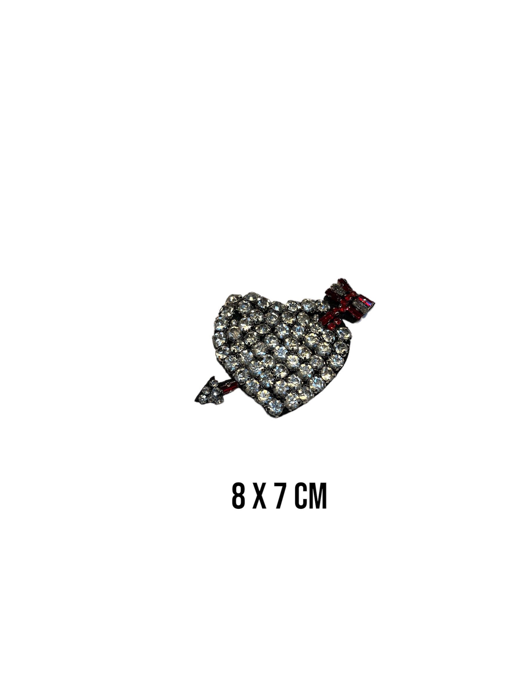 Este deslumbrante parche presenta un corazón resplandeciente de strass, con una flecha que atraviesa con gracia su centro.