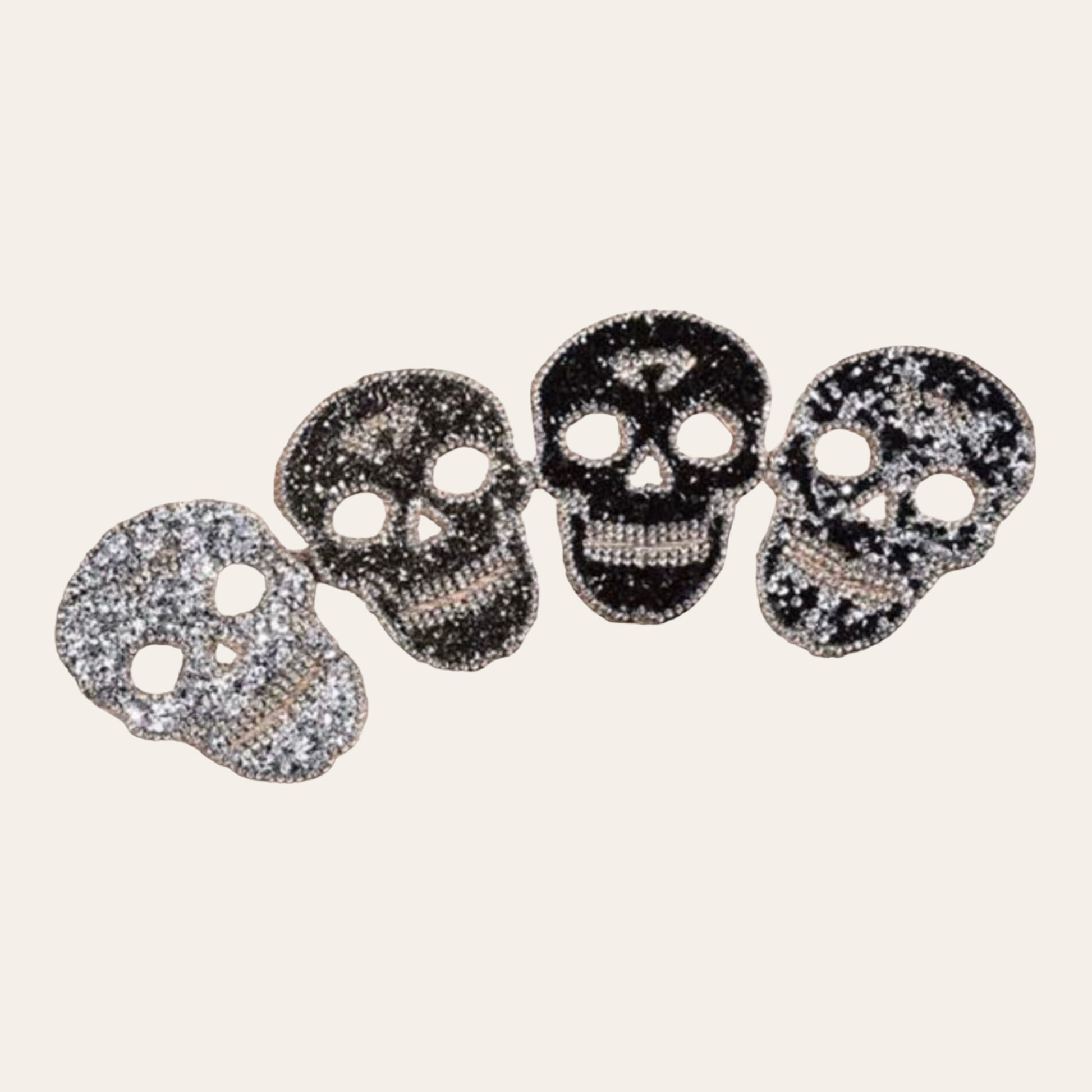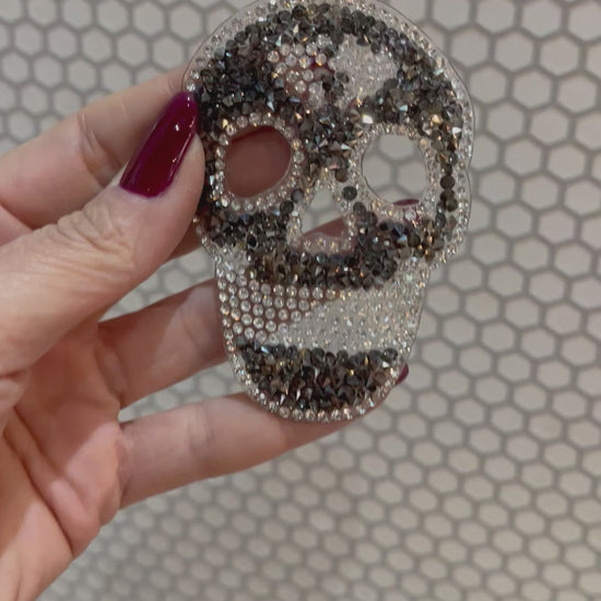 El parche termoadhesivo de calavera con strass es una pieza elegante y llamativa.